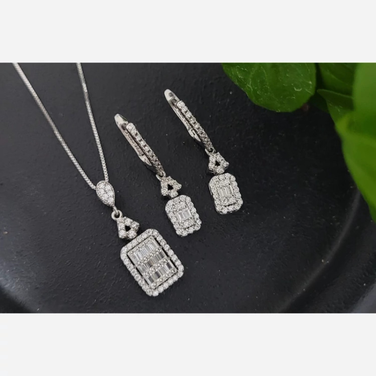 آبکاری رادیوم ایتالیایی عیار تضمینی925 اقلام ست: زنجیر، پلاک، گوشواره وزن ست: 7.830