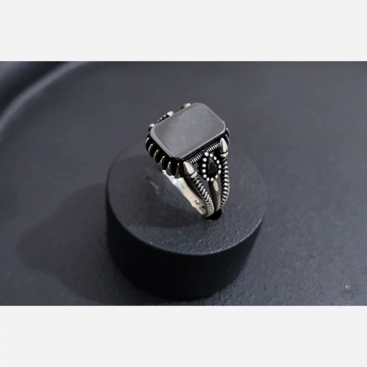 انگشتر نقره ترک نگین مستطیل مردانه