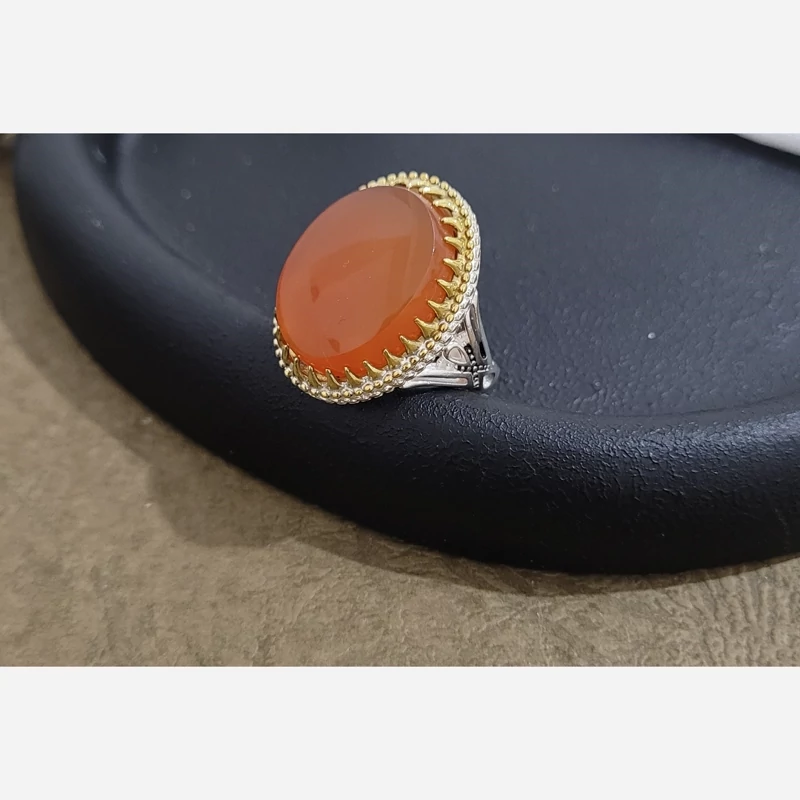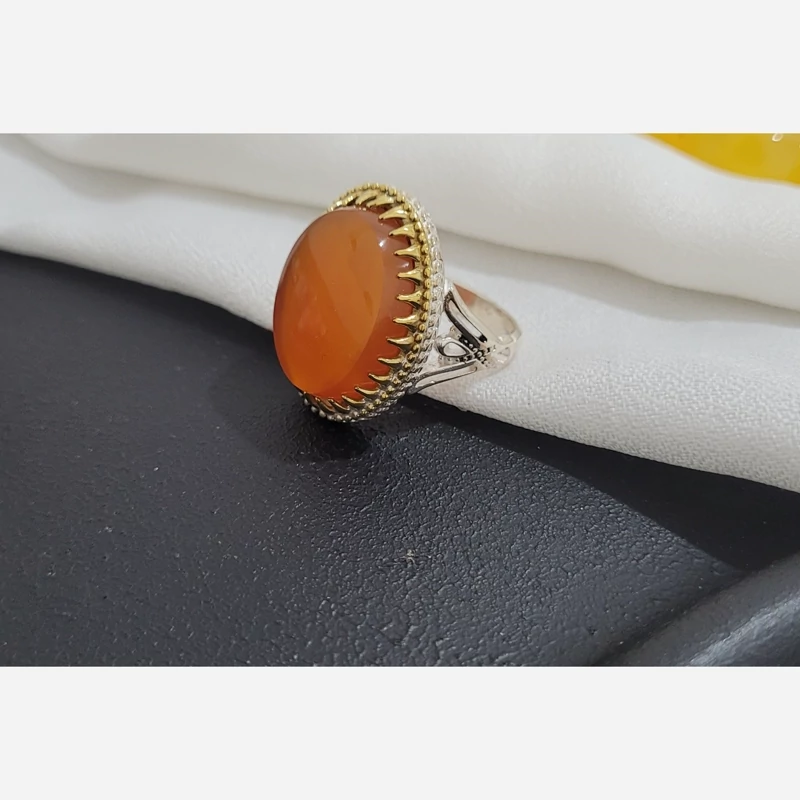 عیار تضمینی 925 ثبات رنگ دارد وزن انگشتر: 13.460 سایز انگشتر: 62 نگین عقیق یمن