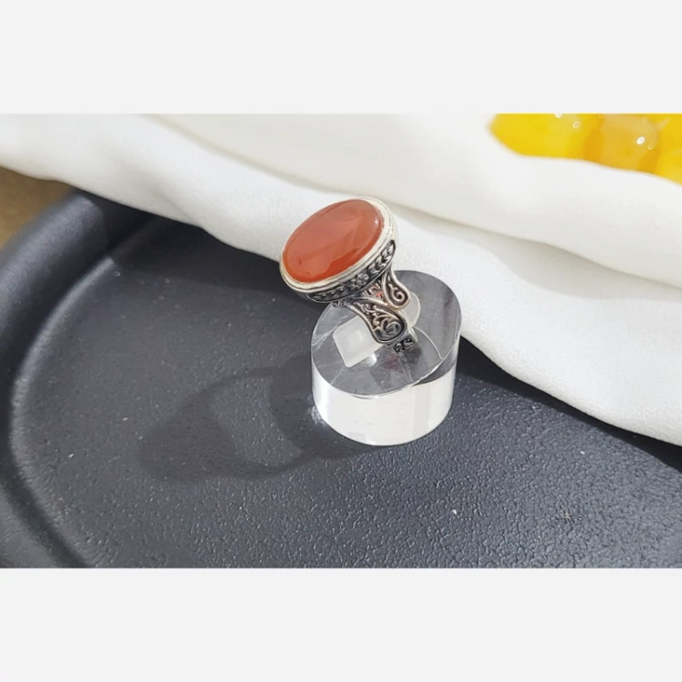 ثبات رنگ دارد عیار تضمینی 925 وزن انگشتر: 8.180 سایز انگشتر: 64 نگین: عقیق اصل یمن