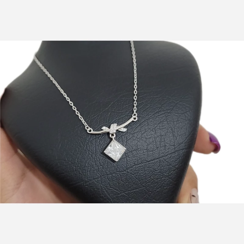 گردنبند نقره زنانه نگین سفید لوزی
