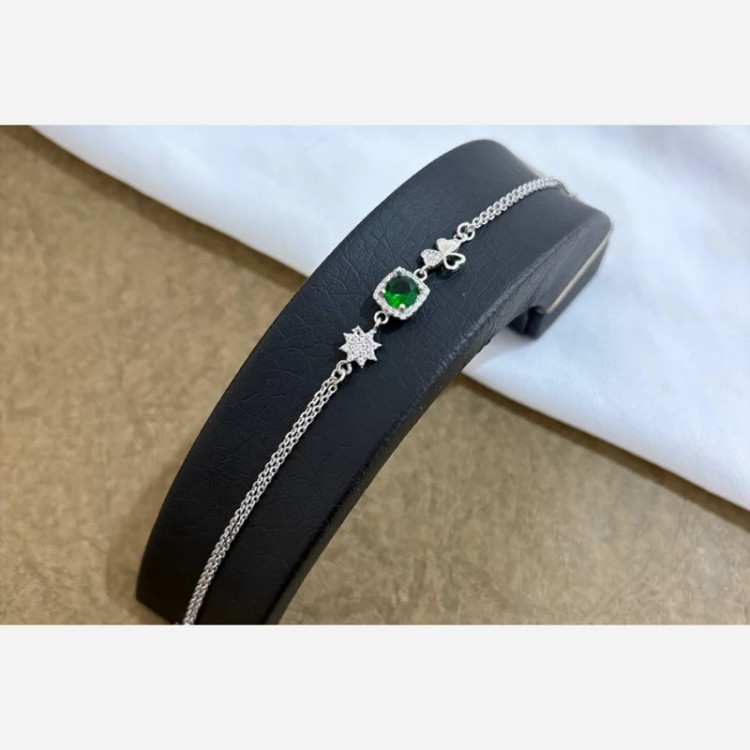 دستبند نقره دولاین نگین سبز