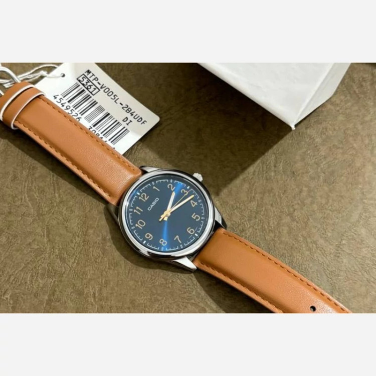 ساعت بند چرم کاسیو مردونه صفحه سورمه ای