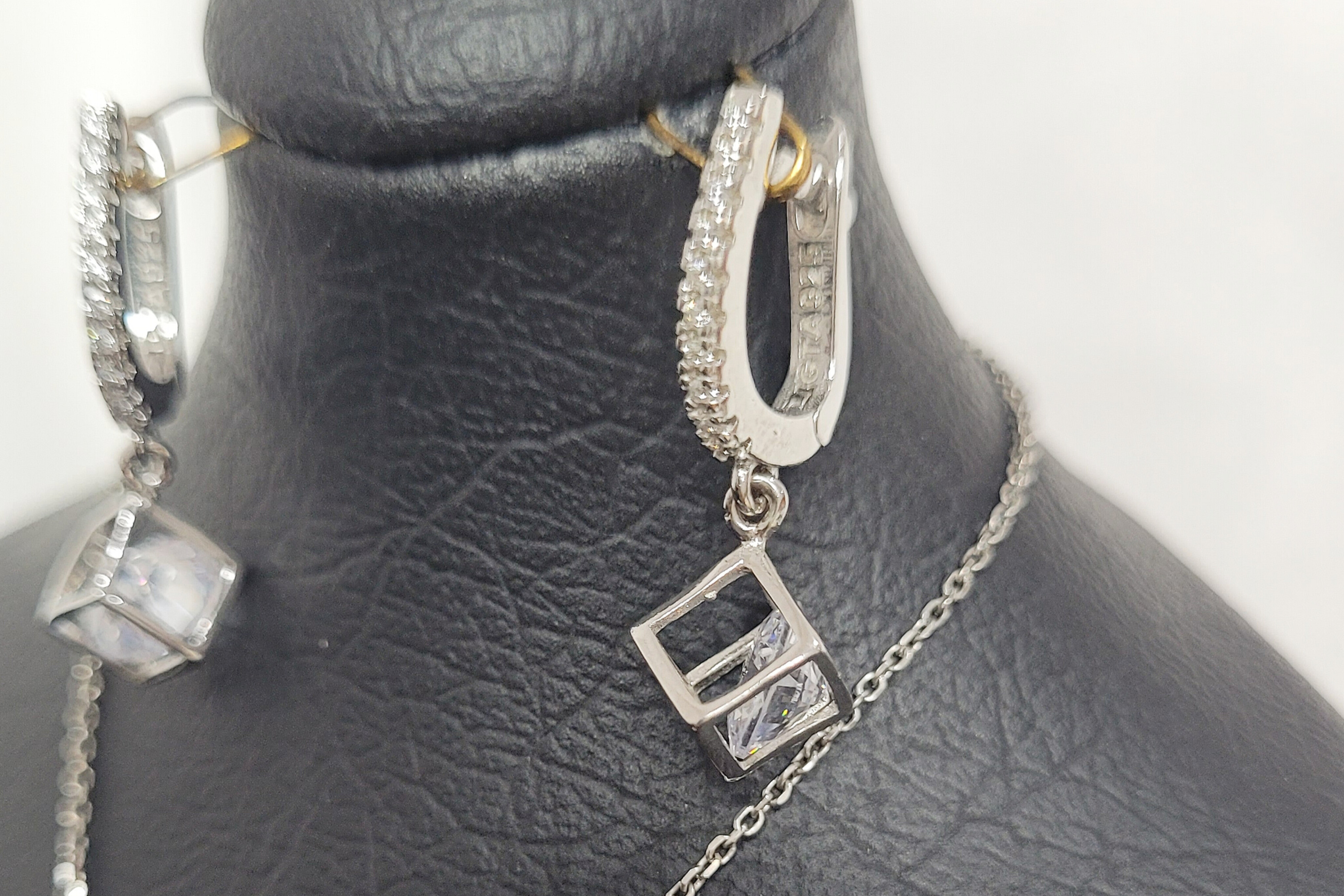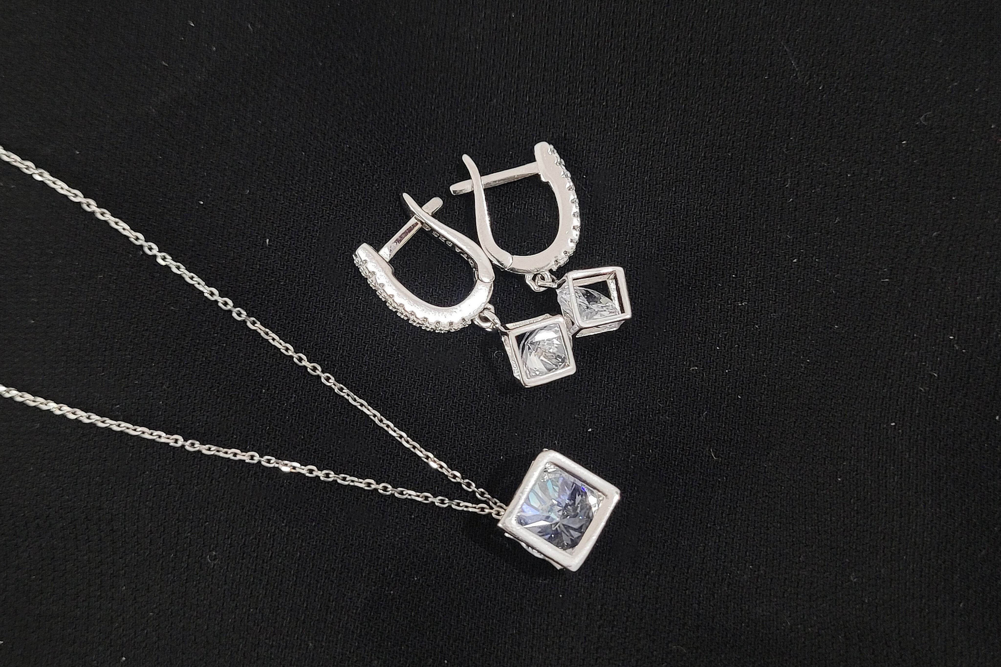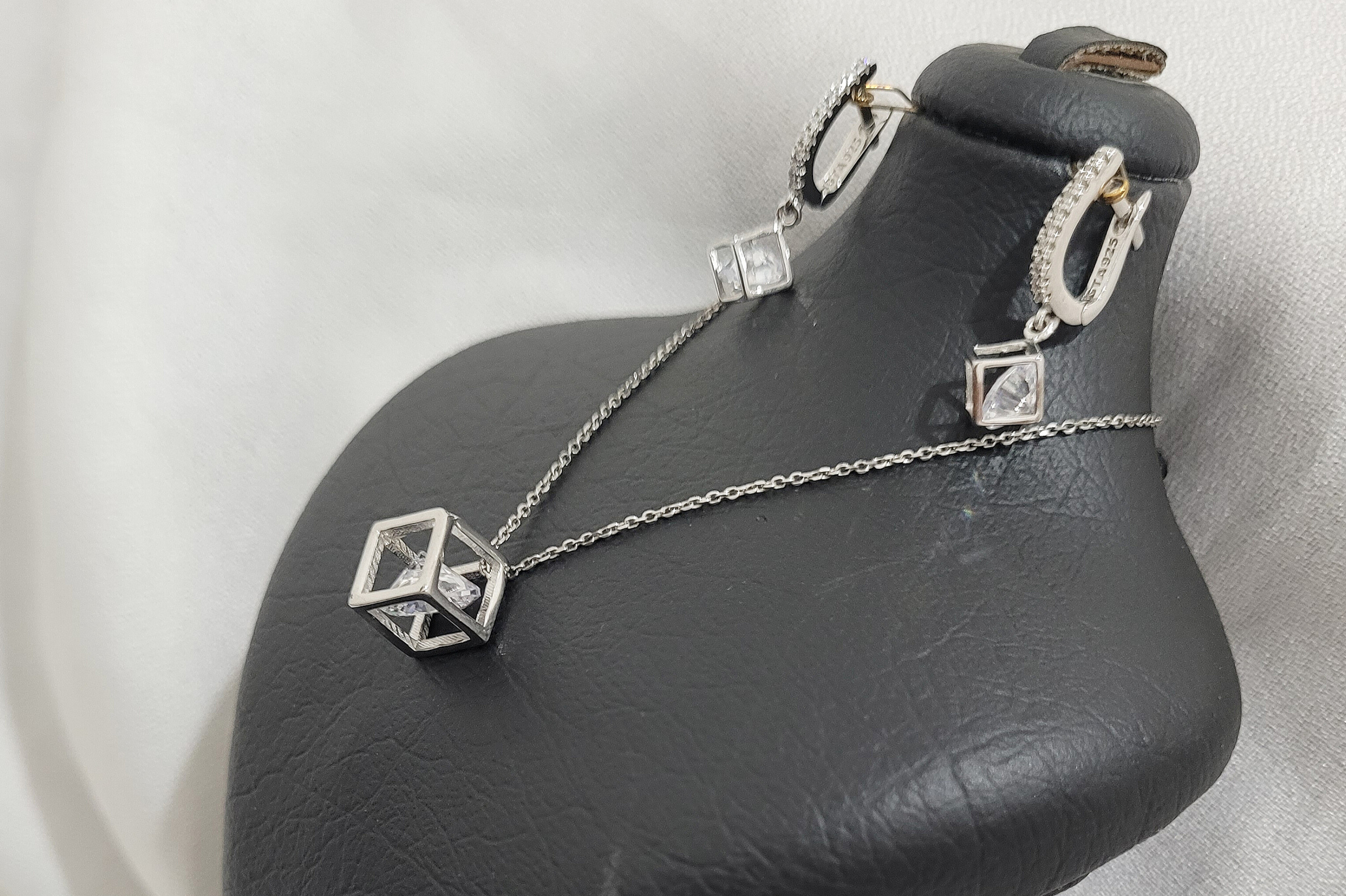 نیم ست نقره زنانه مدل مکعبی زنجیری